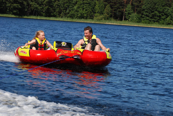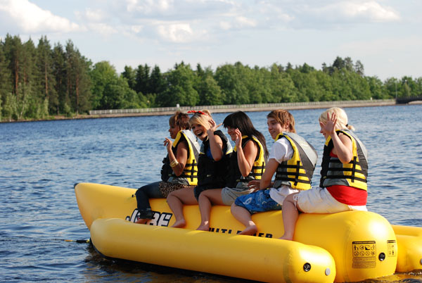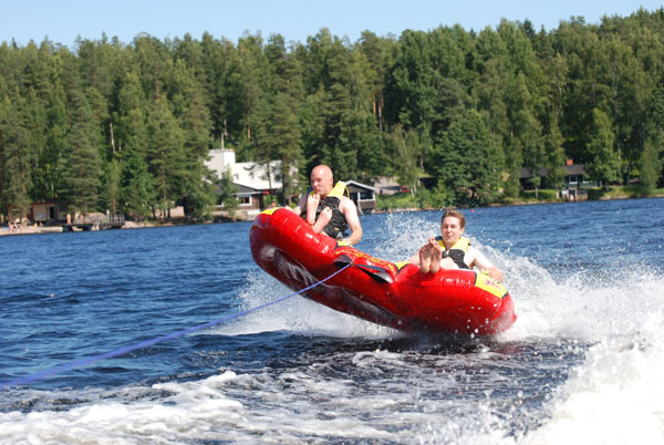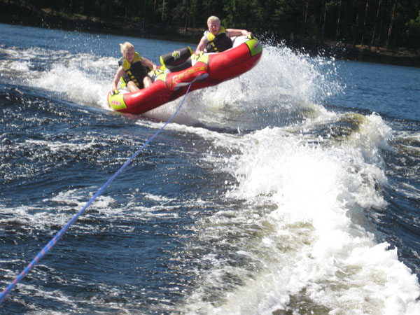 Banaaniveneajelu vie sinut ystäviesi kanssa Saimaan tai Vuoksen aalloille, unohda hetkeksi arki ja istu nauttimaan vauhdista ja maisemista. Kylmän veden aikaan käytössämme on kuivapuvut joten kastumistakaan ei tarvitse pelätä.